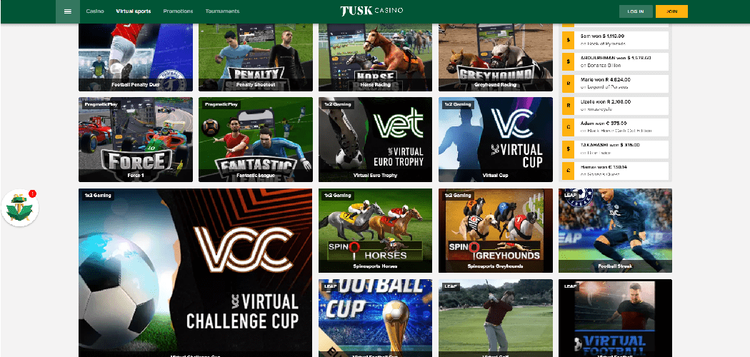 Spielautomaten, von denen viele Video-, Jackpot- und Megaways-Optionen bieten, machen den Großteil der Spielebibliothek des Casinos aus. Roulette, Blackjack, Baccarat und Poker sind nur einige der über 120 Live-Dealer-Spiele, auf die man wetten kann. In der Sportabteilung von Tusk können Sie auch virtuelle Versionen beliebter Sportarten wie Fußball, Tennis, Hunde- und Pferderennen und mehr spielen. Um Ihnen bei der Entscheidung zu helfen, ob es sich lohnt, mit echtem Geld zu wetten, bieten die meisten Spiele Demoversionen an.