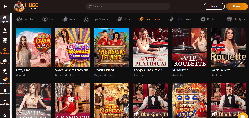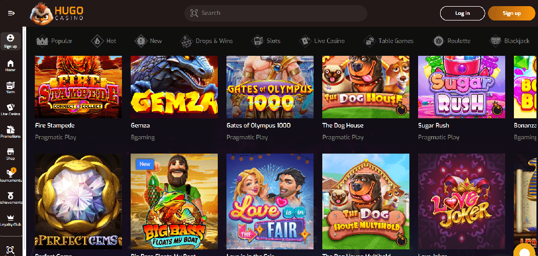 The greatest iGaming experience imaginable is brought to you by Hugo Casino's partnerships with more than 70 of these providers. You can find games developed by both established firms and those that are just starting out in the industry. Evolution, Play'n GO, NetEnt, Playson, BGaming, Pragmatic Play, Atmosfera, 1x2gaming, Spribe, Zillion, KA Gaming, TrueLab, Ezugi, Reevo, Habanero, OnlyPlay, Kalamba, Slotmill, Popiplay, and countless more developers have games available for you to play.