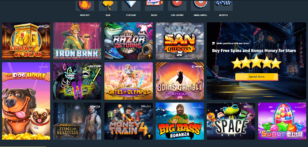 The casino uses games developed by industry heavyweights, as indicated earlier. Playtech, Pragmatic Play, Play'N Go, Evolution, Netent, Thunderkick, Big Time Gaming, BetSoft, Iron Dog Studio, and Playtech are among these companies. Many smaller but reliable developers have contributed games to the library, including Relax Gaming, Hacksaw, NoLimit City, Habanero, Mascot, and countless more.