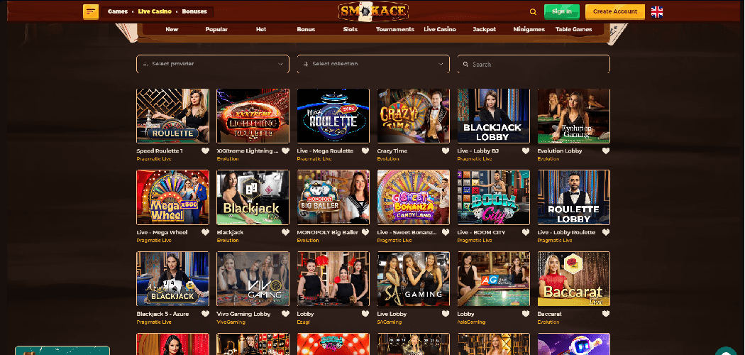Was zeichnet Smokace Casino hinsichtlich seiner Spieloptionen aus und welche renommierten Spieleentwickler tragen zu seiner umfangreichen Bibliothek bei?