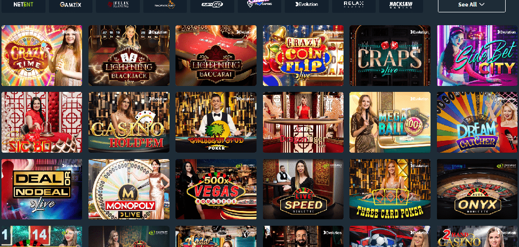 Wie bereits erwähnt, verwendet das Casino Spiele, die von Branchengrößen entwickelt wurden. Zu diesen Unternehmen gehören Playtech, Pragmatic Play, Play'N Go, Evolution, Netent, Thunderkick, Big Time Gaming, BetSoft, Iron Dog Studio und Playtech. Viele kleinere, aber zuverlässige Entwickler haben Spiele zur Bibliothek beigetragen, darunter Relax Gaming, Hacksaw, NoLimit City, Habanero, Mascot und unzählige mehr.