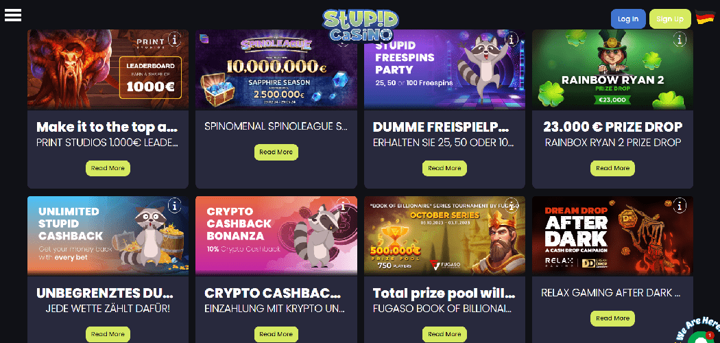Im brandneuen Online-Glücksspielplatz Stupid können Sie aus einer unglaublichen Auswahl von über neuntausend Waren wählen, darunter Spielautomaten, Mini- und Tischspiele, Live-Dealer-Lobbys und vieles mehr. Versus Odds BV, ein junger, aber sehr produktiver Glücksspielanbieter mit einem bescheidenen, aber schnell wachsenden Markenportfolio, startete es Anfang Oktober 2023 und begrüßte noch im selben Monat seine ersten Spieler. Zusätzlich zu ihren anderen großen Vorteilen ist die Organisation für ihre wettfreien Angebote bekannt.