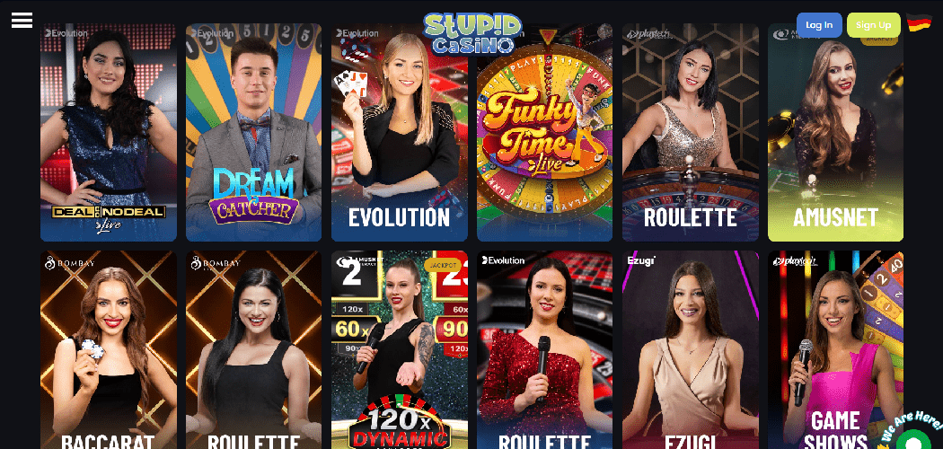 Stupid Casino verfügt über eine umfangreiche Sammlung von über neuntausend Spielen, darunter Spielautomaten, Minispiele, Tischspiele und Live-Dealer-Lobbys. Spieler können für die meisten Spiele auf eine Demoversion zugreifen, die es ihnen ermöglicht, das Gameplay und die Funktionen zu testen, bevor sie sich für den Einsatz von echtem Geld entscheiden.