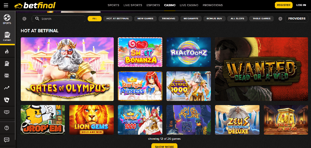 Betfinal gir en stor matchbonus på det første innskuddet, og det tilbyr et bredt spekter av spill fra kjente spilleautomatprodusenter som Pragmatic Play, Habanero, ISoftBet, NetEnt og mer. Spillere kan nyte poker, blackjack, rulett, keno, bingo og live dealer-spill på plattformen.