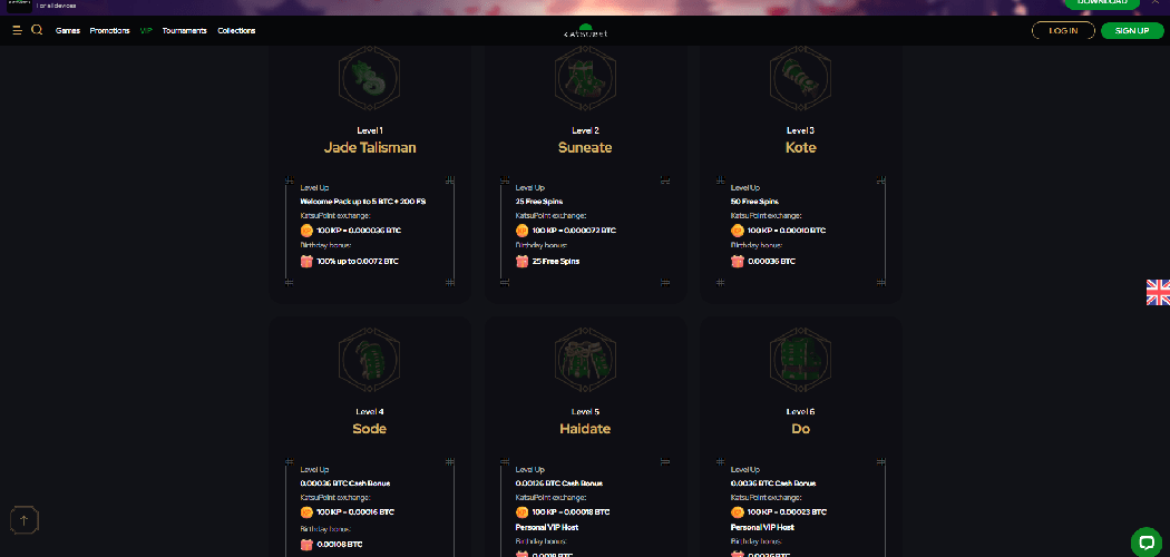 KatsuBet posisjonerer seg som en "eksotisk spilløy i underholdningens hav" med et asiatisk tema. Det kaller seg et "prisvinnende kasino" med god grunn og hevder å tilby mer enn 2200 kasinospill, inkludert 5000 spilleautomater, jackpotspill, bordspill, live dealer-spill og BTC-spill, slik at spillere kan prøve demoversjoner før de satser på ekte Penger.