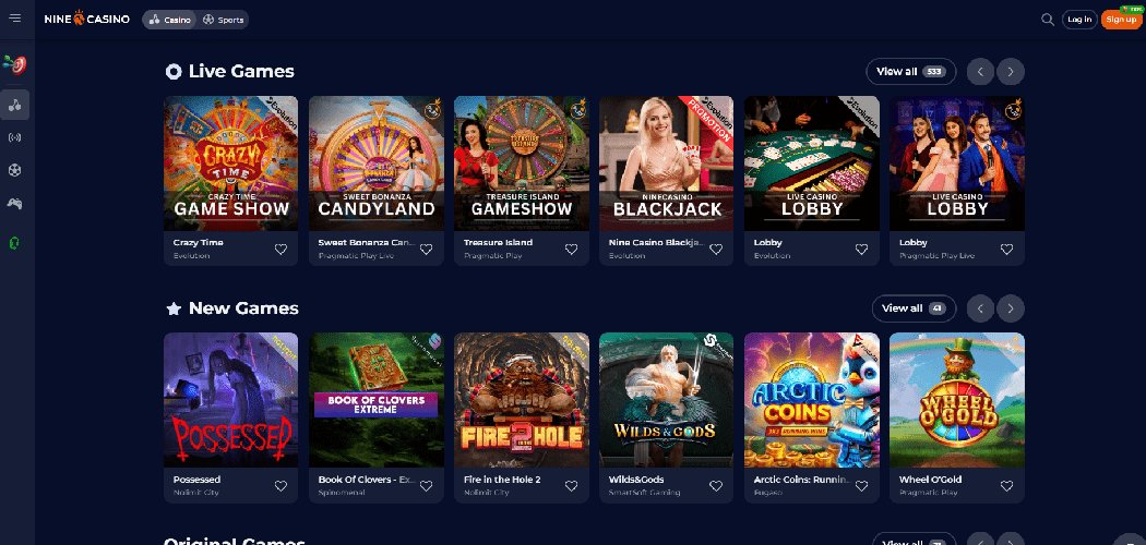 Launched in 2021, Nine is a newcomer to the gambling site sector with a solid collection of over 2000 fun games. Not only does the casino have an incredible selection, but it also provides new and existing customers with great deals and promotions. A big dynamic web banner displaying the current specials is part of the website's minimalist design, which also features a dark and plain layout.
