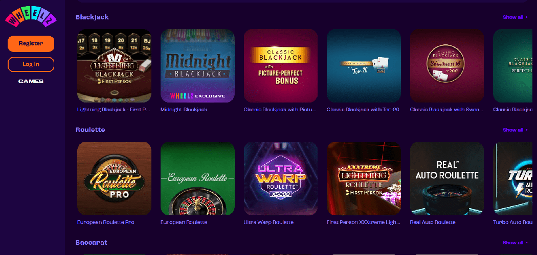 Navigating the Wheelz Casino website is designed to be intuitive. The registration, login, and games tabs are conveniently located. While Wheelz Casino doesn't have a dedicated mobile app, players can access the website on their iOS or Android devices for on-the-go gaming.